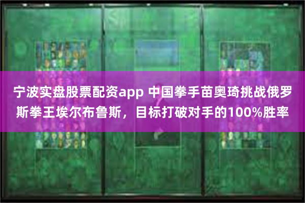 宁波实盘股票配资app 中国拳手苗奥琦挑战俄罗斯拳王埃尔布鲁斯,目标打破对手的100%胜率